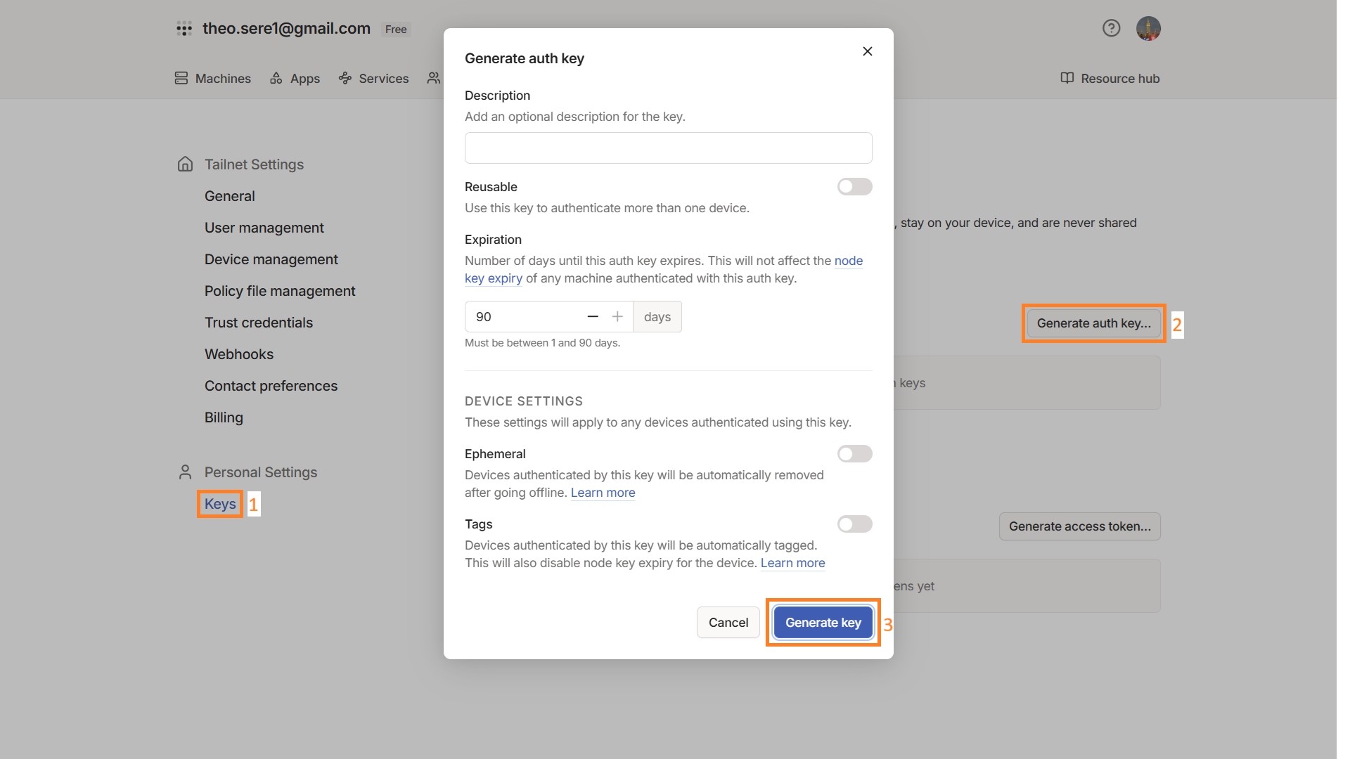- Rendez-vous sur https://tailscale.com/ et créez votre compte.