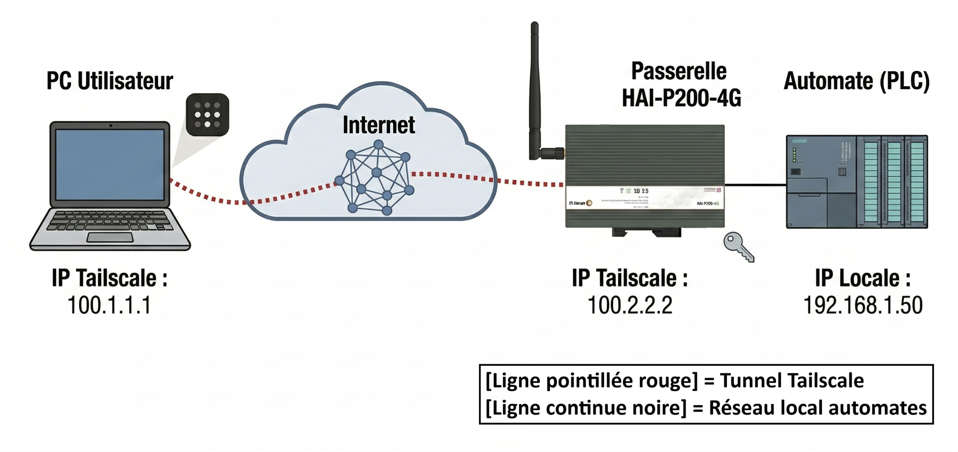 - Le contrôleur HAI-P200-4G connecté à Internet
